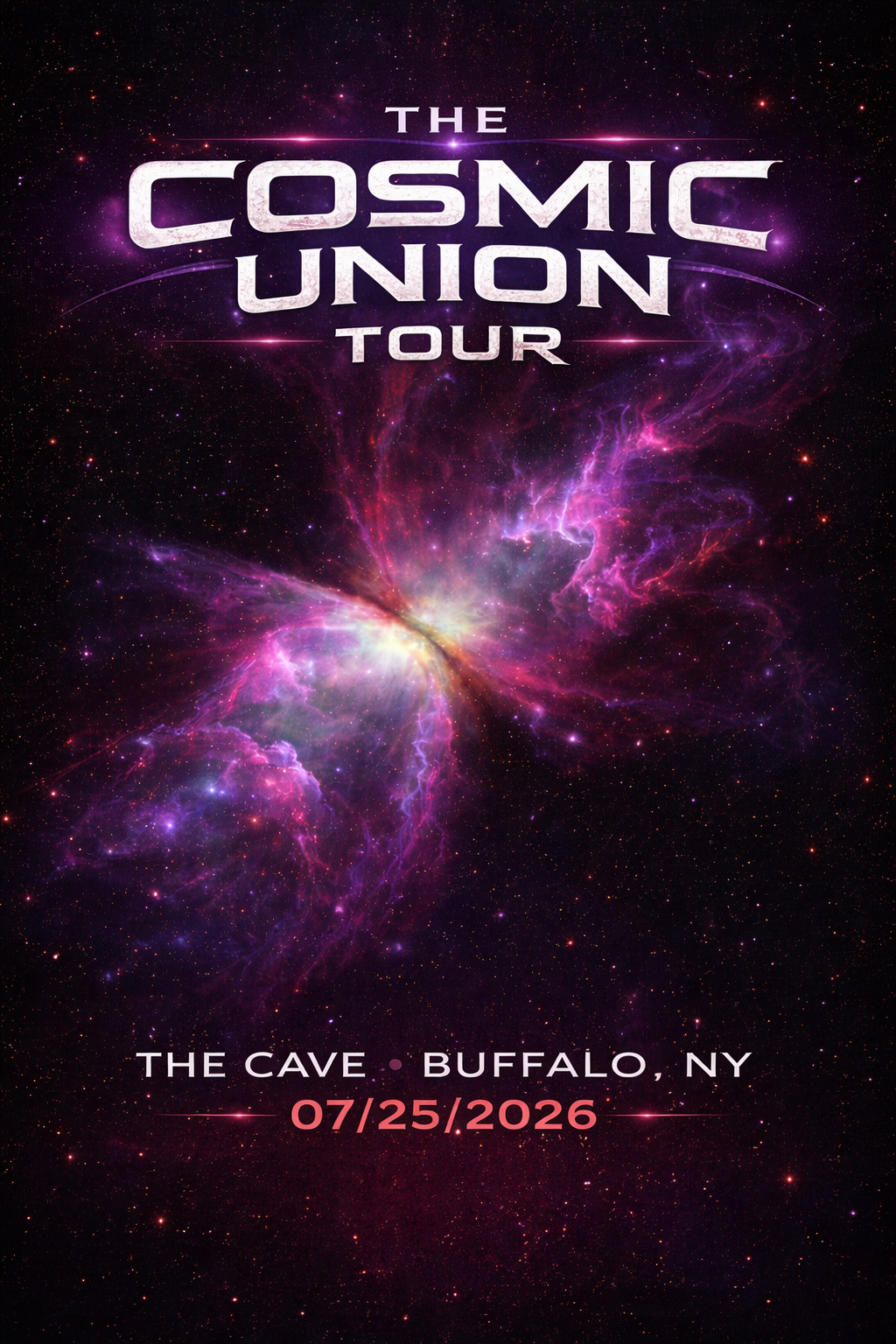 Meet us on July 25, 2026 at The Cave in Buffalo, NY for our Cosmic Union. Your all-access pass covers everything: food, limited open bar, music, and best of all, absolutely zero service fees. And there’s also a wedding…
